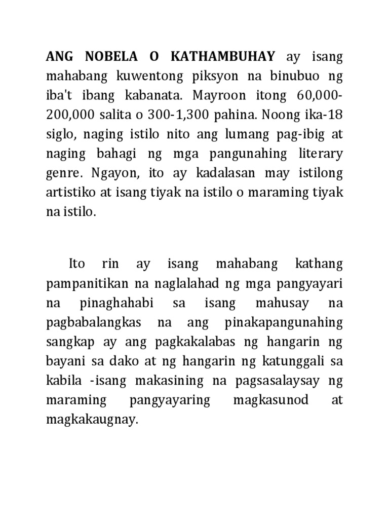 HERE maraming mga isinalin pangungusap halimbawa na naglalaman ng ANG ISANG NOBELA - tagalog-ingles pagsasalin at search engine para sa tagalog pagsasalin. Ano ang mga istraktura ng nobela. Buod Ng Nobelang Masining Essay Sample.