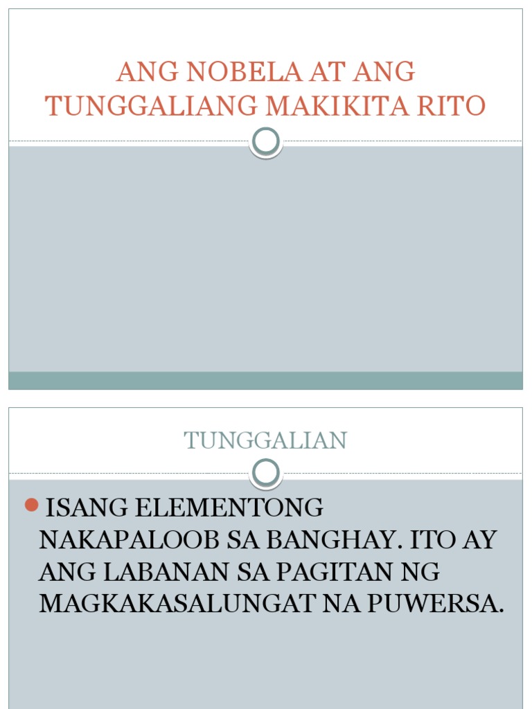 Dahil sa angking husay sa pagtuturo at mabuting kalooban. 1Pisikal tao laban sa mga elemento at puwersa ng kalikasan 2Panlipunan tao laban sa kapwa tao 3Sikolohikal tao laban sa kanyang sarili. Ang nobela o kathambuhay ay isang mahabang kuwentong piksyon na binubuo ng ibat ibang kabanata.