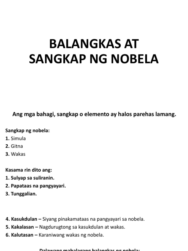 Uri ng Tunggalian sa Nobela. Ang mga pangyayaring ito ay may kanya-kanyang tungkuling ginagampanan sa pagbuo ng isang matibay at kawili-wiling balangkas na siyang pinakabuod ng nobela. Mabisa ba ng pagkakalahad ng mga impormasyon5.