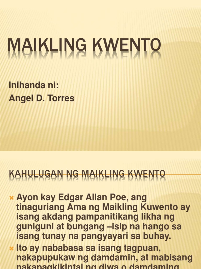 Ayon kay Edgar Allan Poe ang tinaguriang Ama ng Maikling Kuwento ay isang akdang pampanitikang likha ng guniguni at bungang isip na hango sa isang tunay na pangyayari sa buhay. Simula gitna wakas Ang simula ay ang bahaging nagsasaad ng suliranin ng kuwento mga tauhan at tagpuan. Jul 31 2017 Bahagi ng Maikling Kuwento.