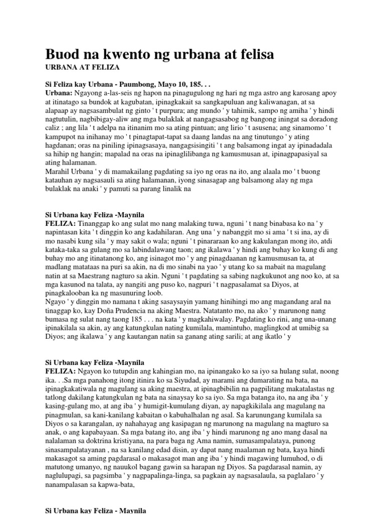 Buod Na Kwento Ng Urbana At Felisa Pdf