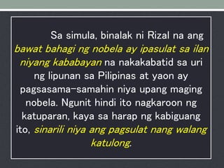 Sunod El Filibusterismo ang kasunod ng Noli Me Tangere. Published 2002 by Guerrero Publishing first published 1961 More Details. Ng mga nobela ni Jose Rizal ang Noli Me Tangere at El Filibusterismo sa orihinal o walang putol na ber- binabasa lang ang nobela base sa kung anong avail- syon sa Ingles sic at pambansang wika sa lahat ng able na aklat at madali ang salin na nauunawaan ng mga paaralan kolehiyo at pamantasan publiko o pri- mga bata.
